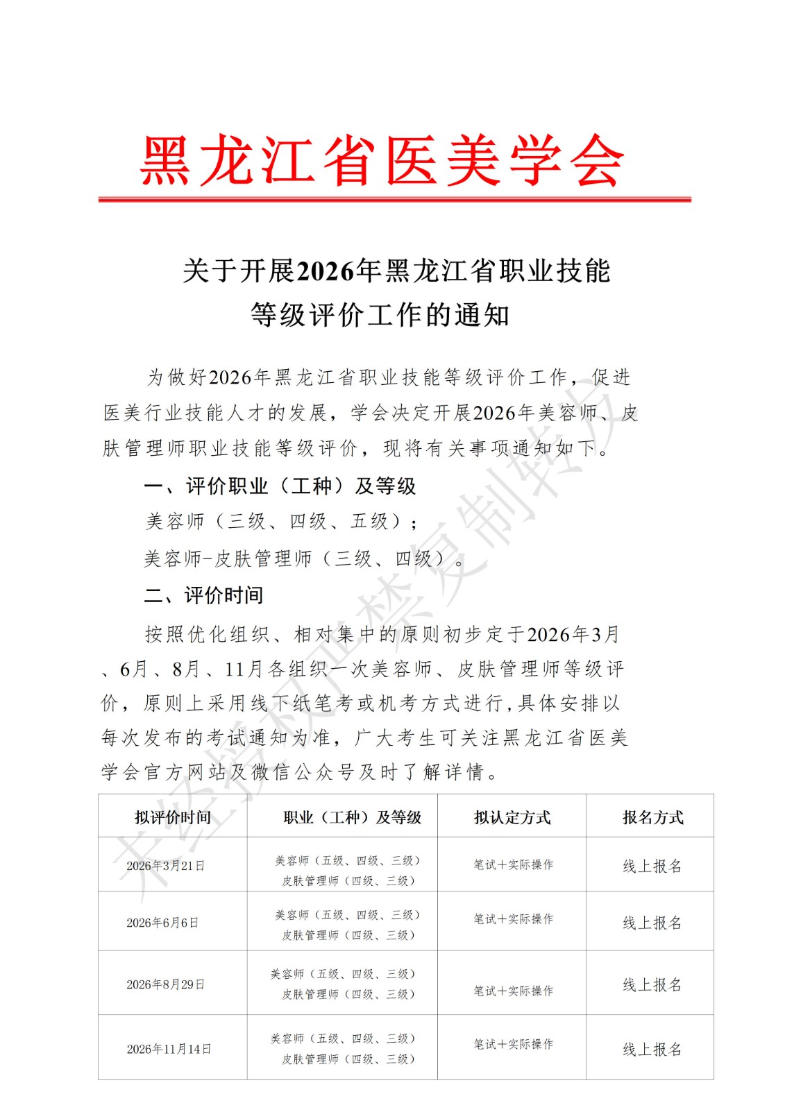 关于开展2026年黑龙江省职业技能等级评价工作的通知